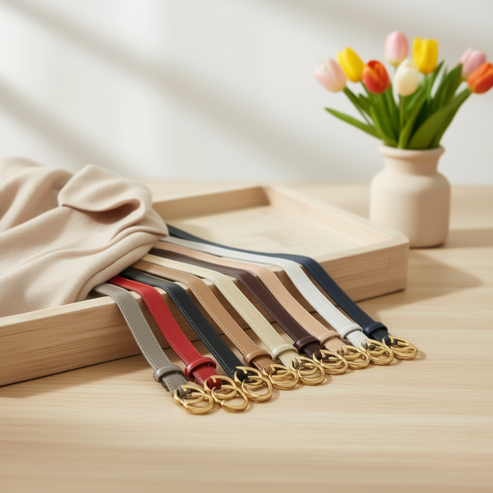Cintura in PU con fibbia ad anello a D, larghezza 2,3 cm, casual e alla moda, per uomo e donna, con accessori in lega.