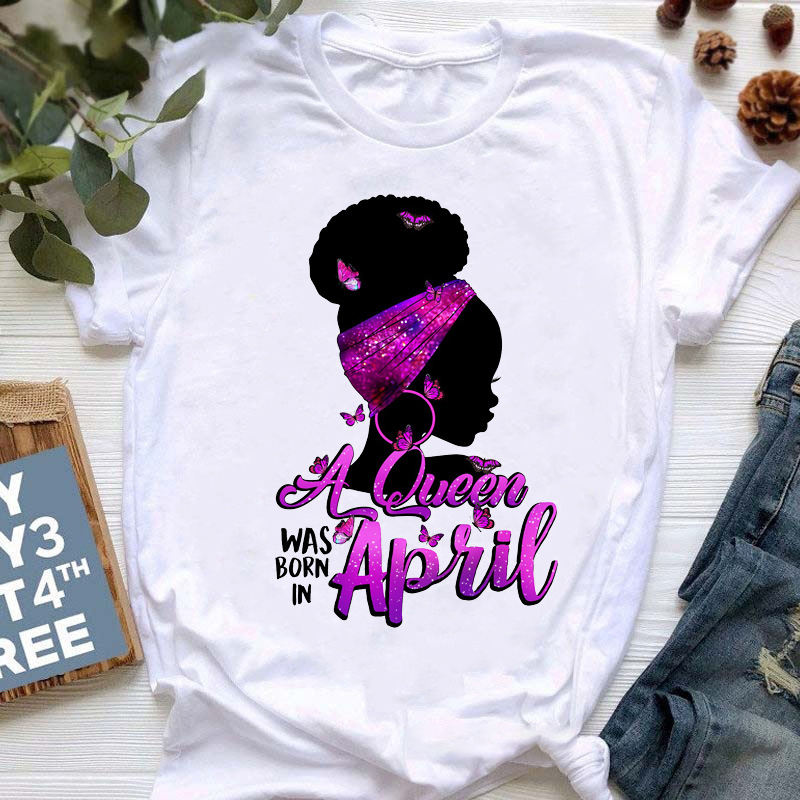 A Queen Was Born in January-December Butterflies Black Girl Print Graphic Tees Women 90s Friends Tshirt Birthday Gift T Shirts