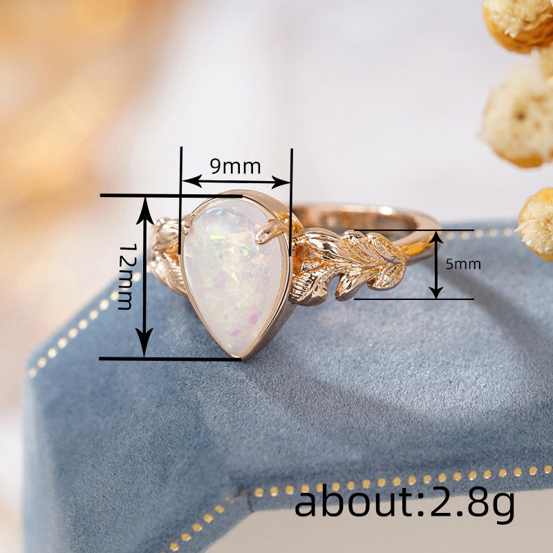 Anello A009 con Opale a Goccia, Placcato Oro, Montatura a Griffe, Gioiello Raffinato da Donna per Fidanzamento