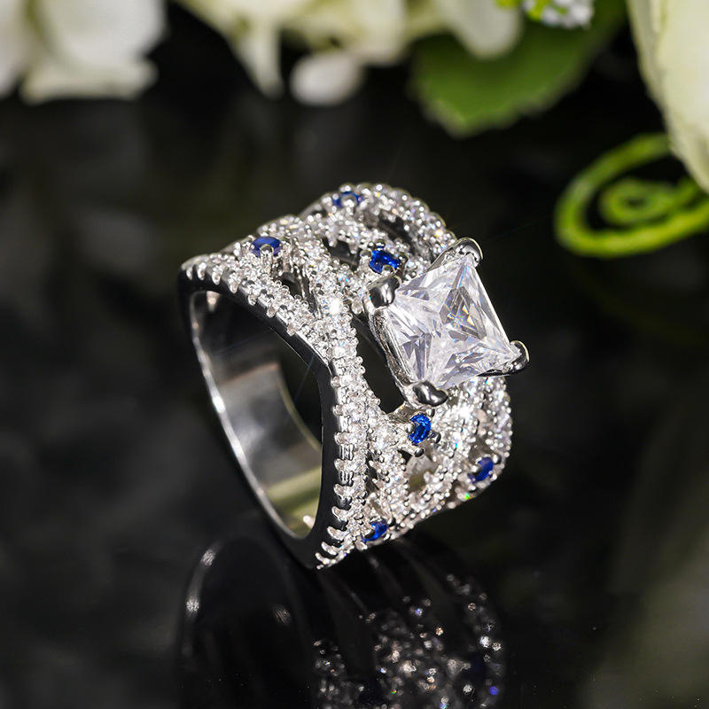 A031 Anello con Diamante Taglio Principessa, Pietra Naturale, Gioiello Classico da Donna per Fidanzamento