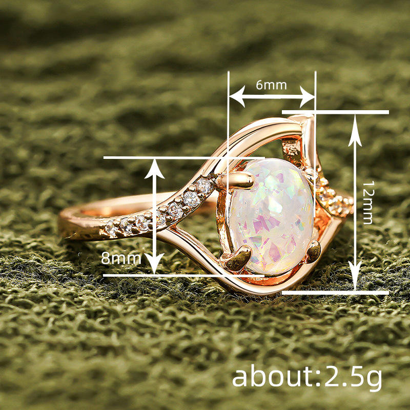 A076 Opal Ring Women's Oval Natural Gemstone Prong Setting Engagement Fashion Rings