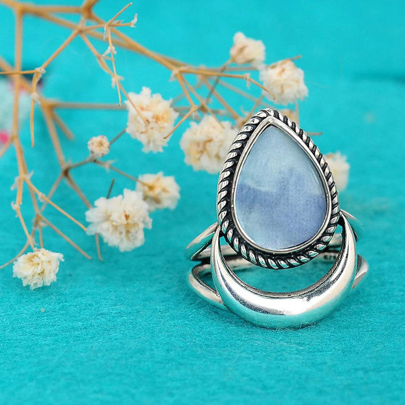 A079 Anelli alla Moda a Forma di Goccia d'Acqua con Gemma di Acquamarina, Montatura a Castone, Gioiello Unisex da Regalo