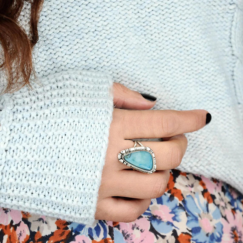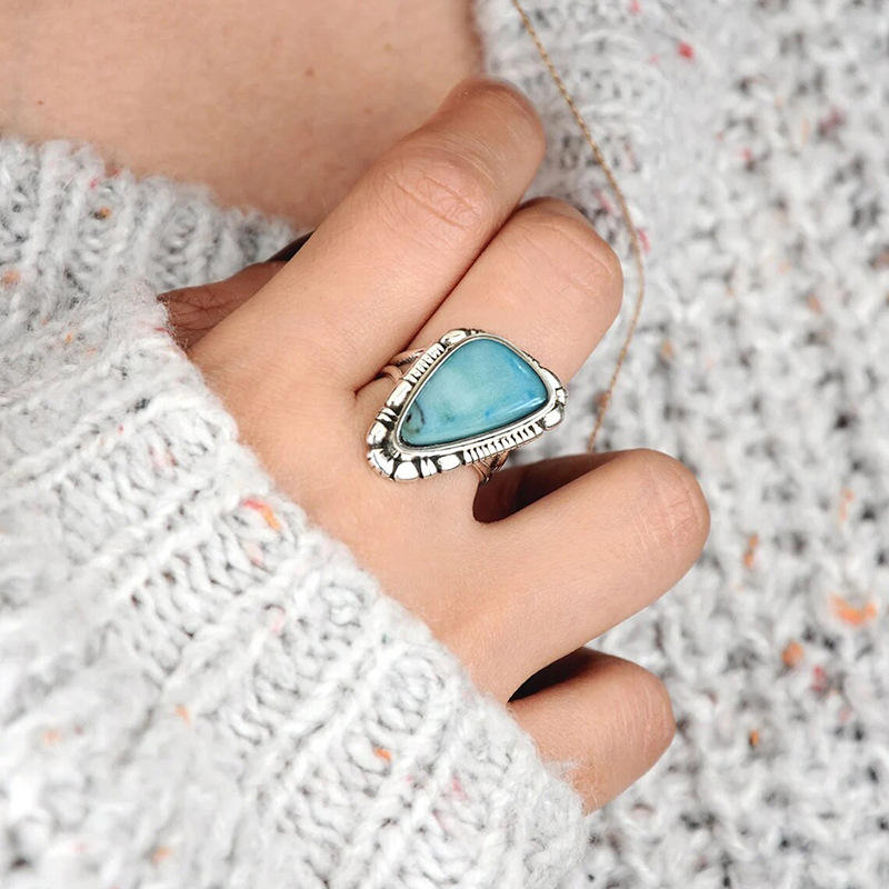 A081 Anello Geometrico da Cocktail con Turchese in Montatura a Castone, Anello Unisex alla Moda, Idea Regalo