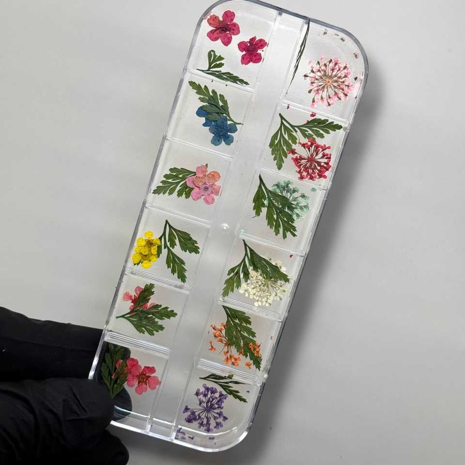 A10jet (E) Scatola Mista per Nail Art con 12 Scomparti, Fiori Secchi Pressati Reali, Accessori per Unghie