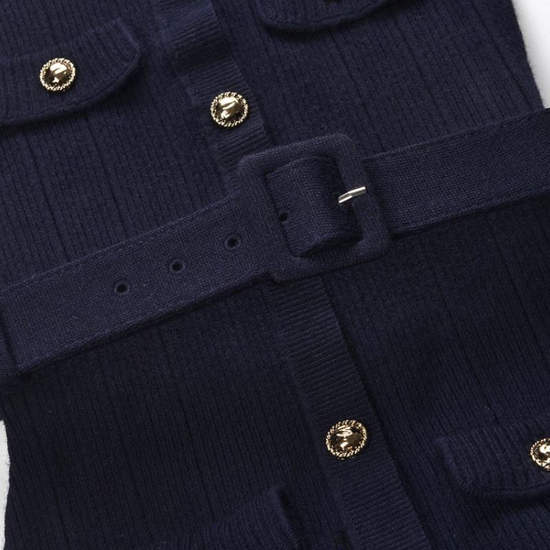 A11231 Women's Blue Sleeveless Knit A-Line Midi Dress 2-in-1 Pearl Necklace/Basic Style Belt Breathable Polyester/Cotton Casual
