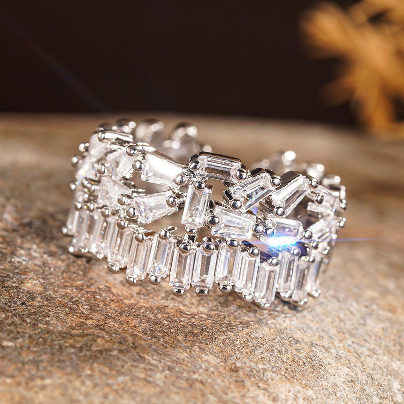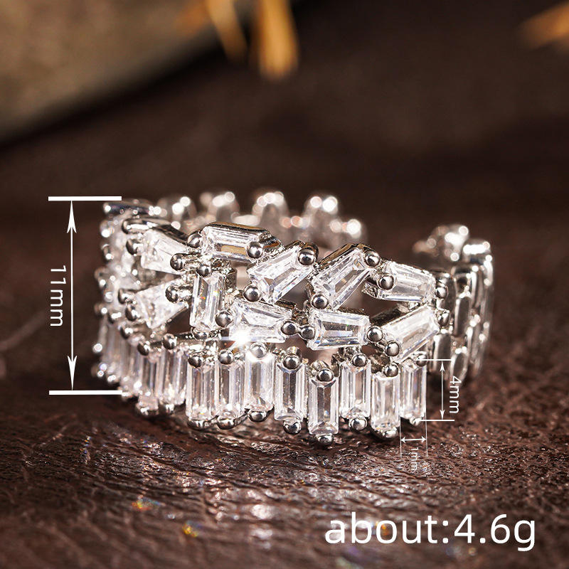 Anello da Cocktail Geometrico A115 in Argento 925 con Cristalli e Strass, Gioiello da Festa per Donne