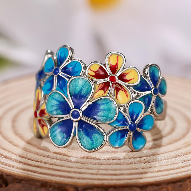 A120 Flower Cuff Bracelet Zinc Alloy Bezel Setting Zircon Women's Gift Jewelry