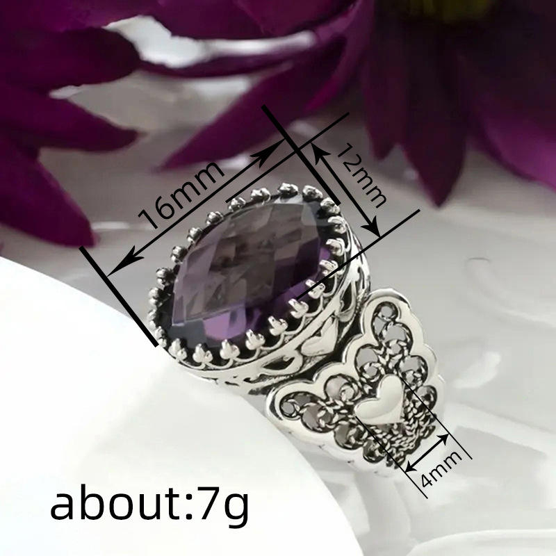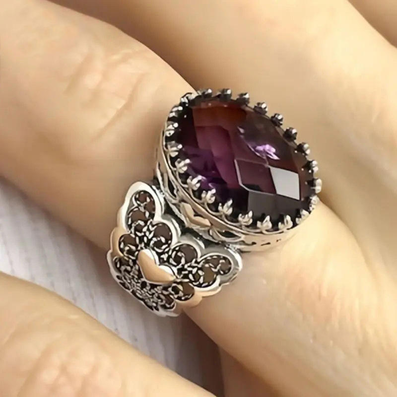 A156 Vintage Flower Cocktail Ring 925 Silver Amethyst Bezel Setting Women's Everyday Wear Fine Rings