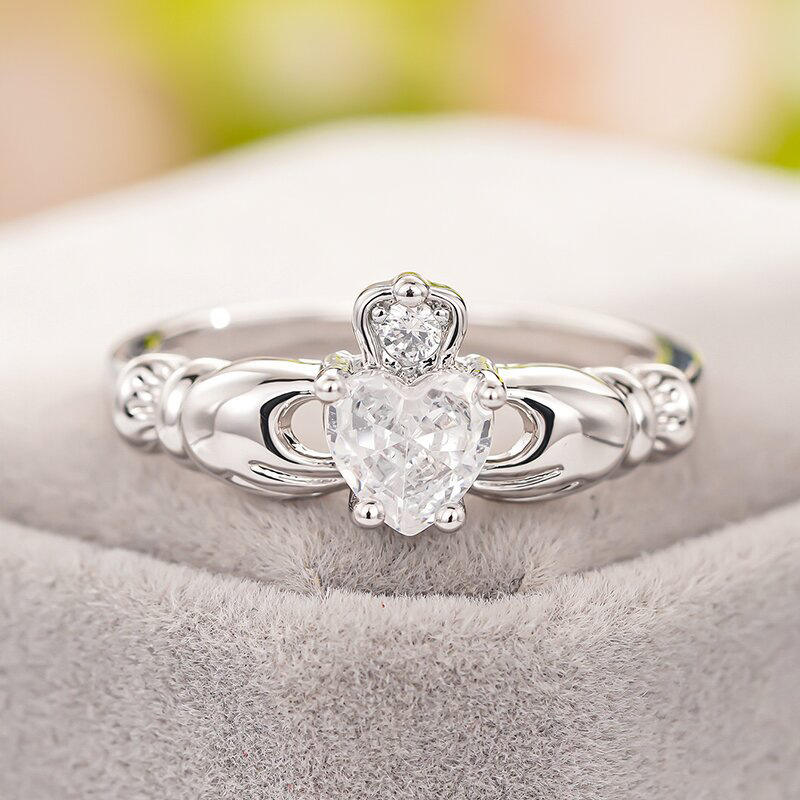 A175 Heart Shape Moissanite Ring 925 Silver Prong Setting Women's Engagement Band