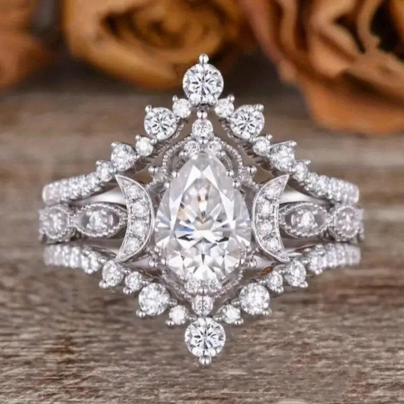 A177 Women's White Gold Diamond Engagement Ring Pear Cut Natural Diamond D Color Side Stones Elegant Design