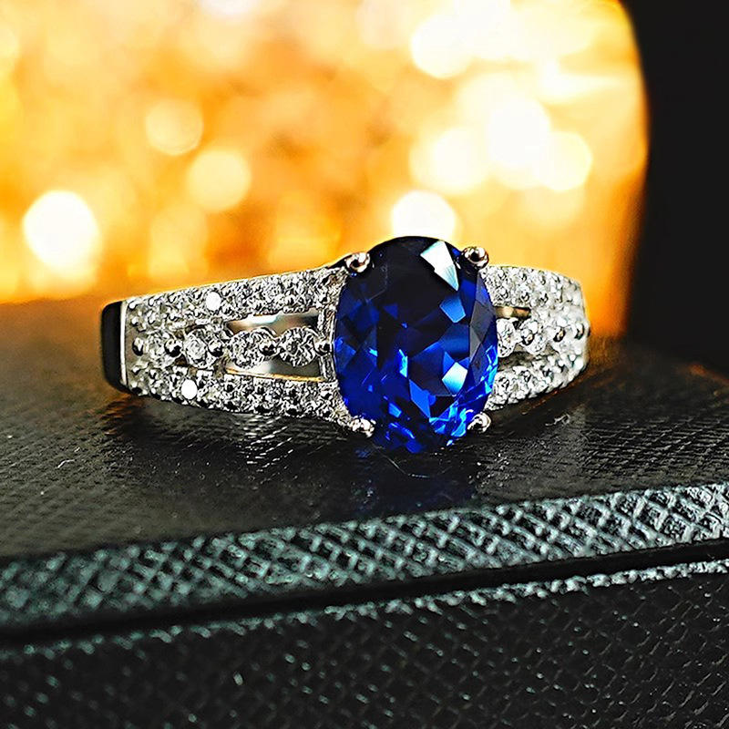 A188 Oval Sapphire Ring 925 Silver Pave Setting Women's Engagement Gemstone Ring