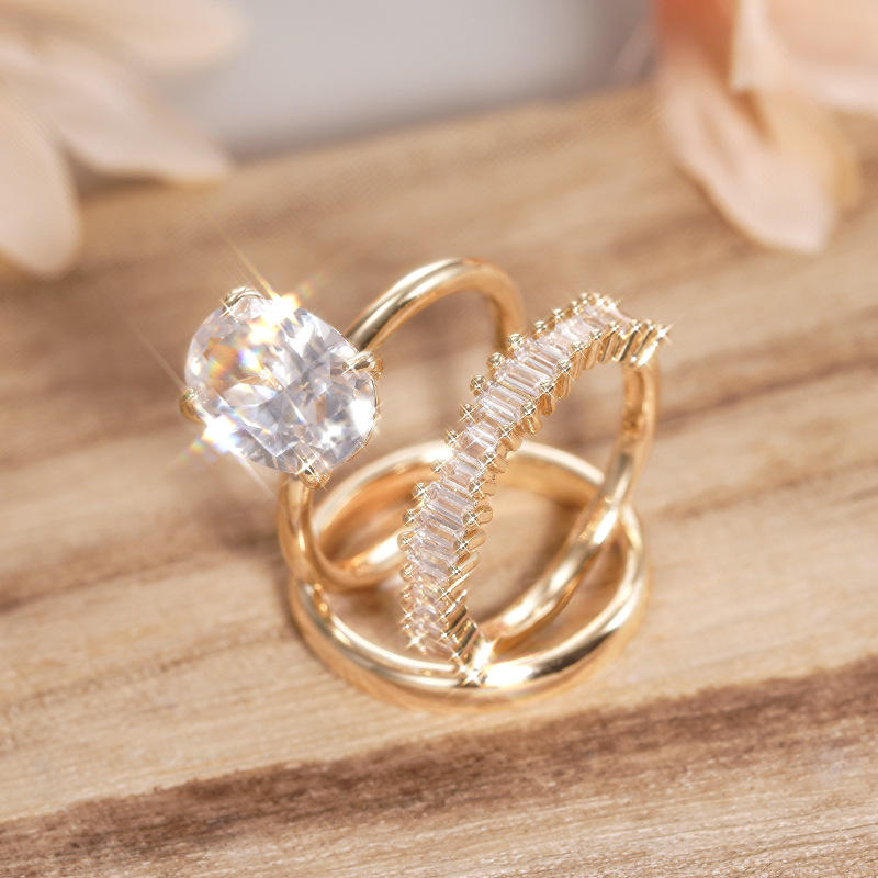 Set di Gioielli da Sposa A195 con Diamante Taglio Ovale, Anello di Fidanzamento da Donna in Oro Massiccio 18K con Montatura a Griffe