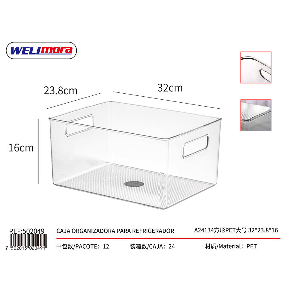 WELIMORA Vassoio portaoggetti quadrato in PET 32x23,8x16 cm per l'organizzazione della cucina del frigorifero