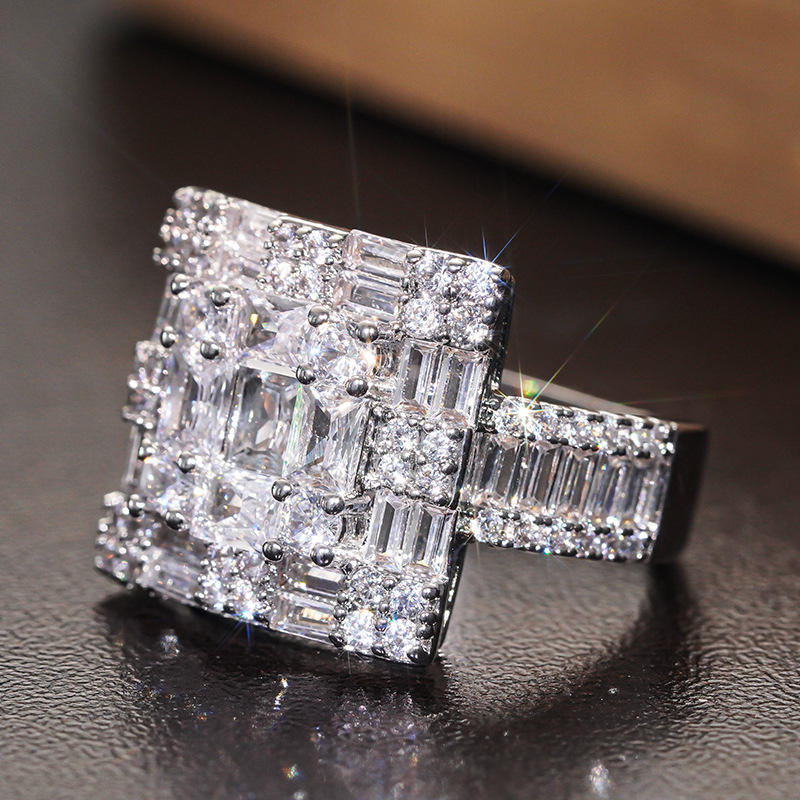 A277 Anello con diamante in oro bianco con taglio baguette colore naturale G per gioielli di fidanzamento da donna