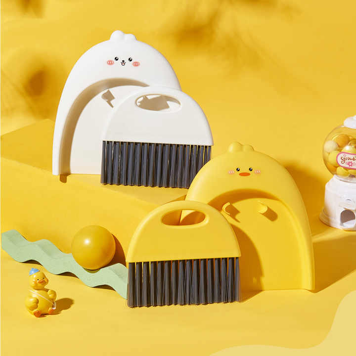 A3413 nuovo grazioso Mini paletta Set di scopa giallo giocattolo d'anatra sostenibile PP setole morbide stile scopa di plastica a mano
