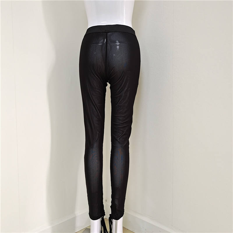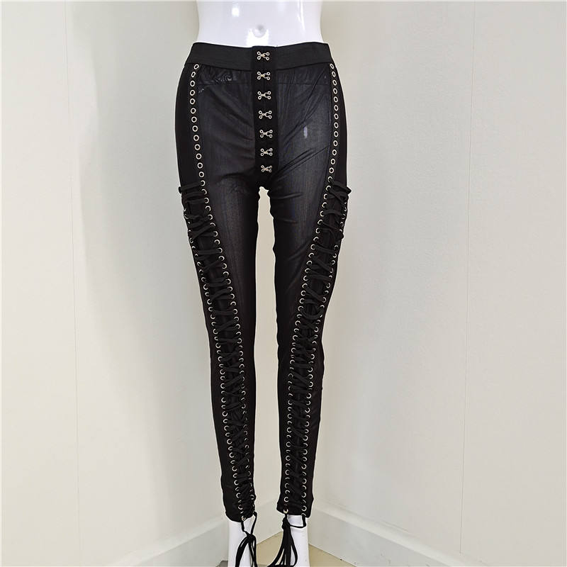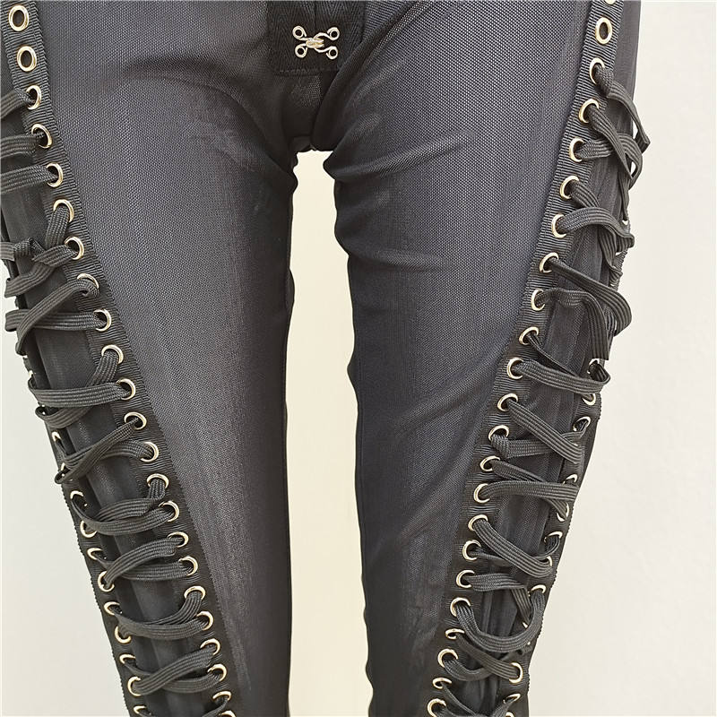 A3733 Leggings Aderenti con Lacci, Pantaloni Lunghi Sexy in Rete, Pantaloni Neri Estivi da Donna, Moda Femminile Elegante