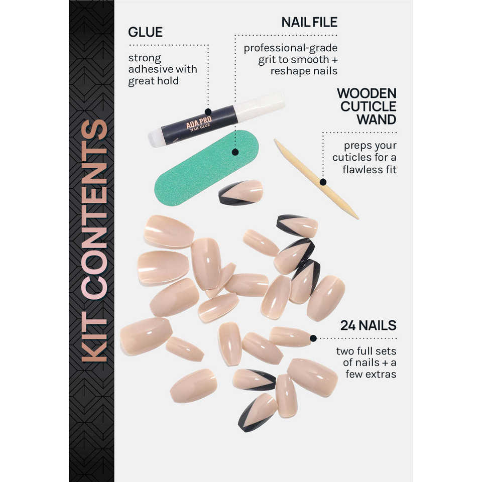 24 unghie, lima per unghie, colla per unghie, bacchetta per cuticole in legno