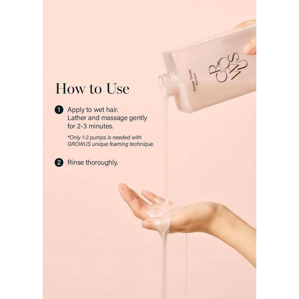 A3shop GROWUS Shampoo Terapeutico per Capelli Danneggiati 500ml, Balsamo Vegano con Olio di Tea Tree, Anti-Forfora, Anti-Crespo, Lisciante, Rinfrescante, per Saloni