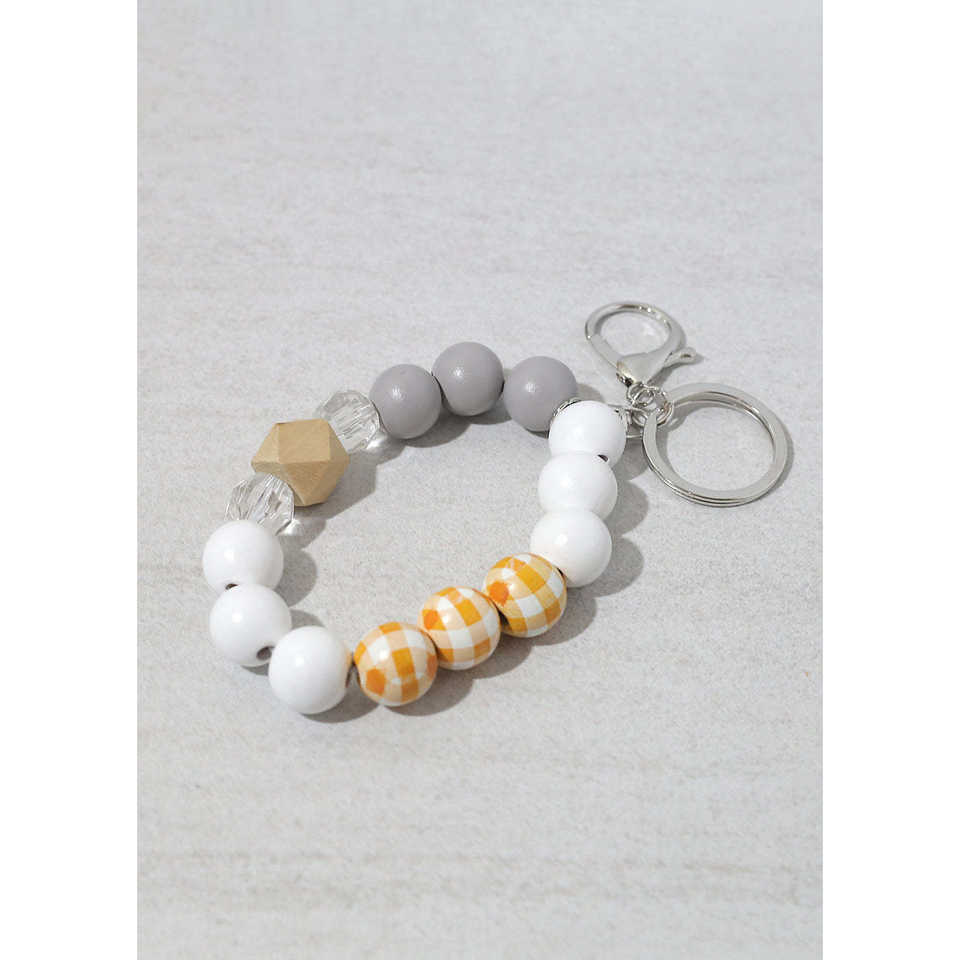 A3shop Leather and Crystal Beaded Keychain Bracelet with Carabiner Plaid-Wood Style