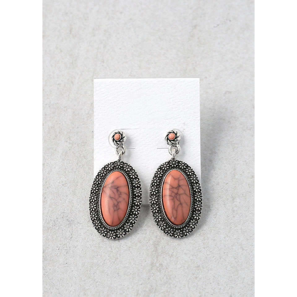 A3shop Oval Gemstone Fashion Drop Earrings with Stylish Gemstone Accent