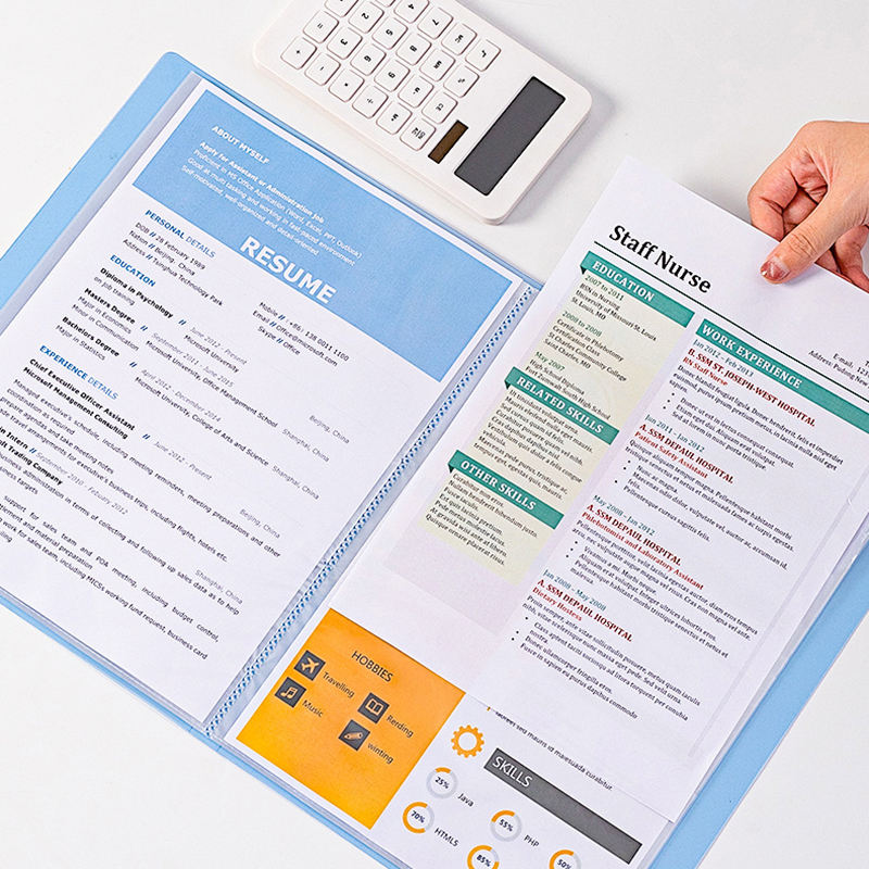 Cartella Portfolio di presentazione in plastica di dimensioni lettere PP