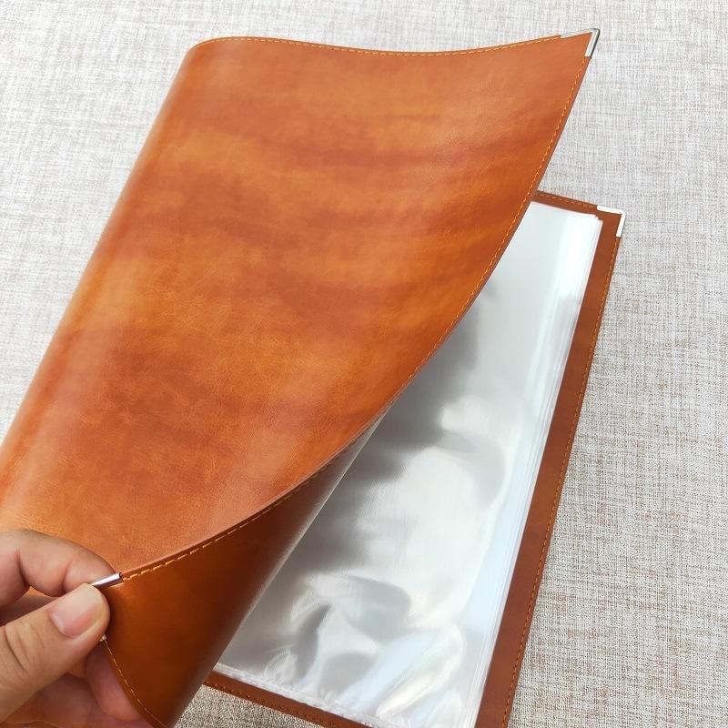 A4 cartella a foglia larga in morbida pelle portadocumenti portadocumenti per organizzazione impermeabile con legatoria