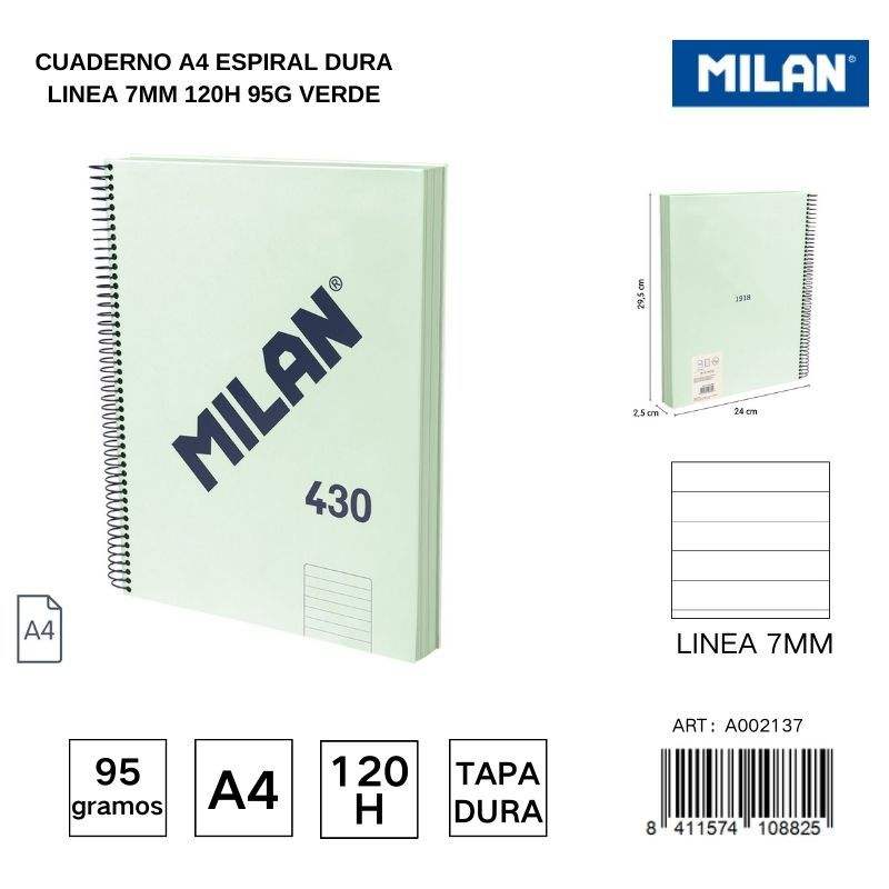 A4 spiral notebook, hard cover, 7mm line, 120 sheets, 95g, green - School supplies and stationery