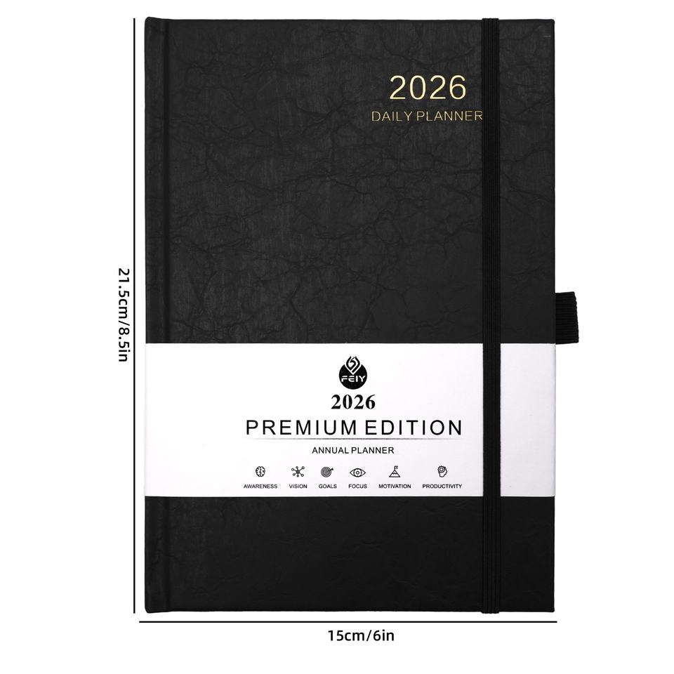 A5 Hardcover Agenda Planner 365 Days Weekly and Monthly Planner 2026 Sewing Binding Diary Stationery with Elastic Band