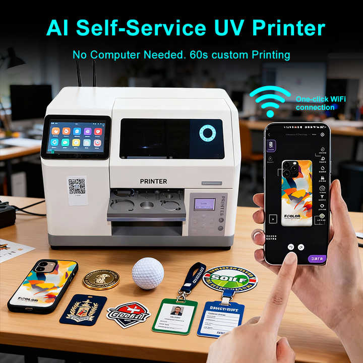 Stampante UV Intelligente AI Formato A5 XP600 Stampante a Getto d'Inchiostro UV Flatbed Controllata da App Mobile per Cover di Telefoni di Piccolo Formato Badge Stampante UV