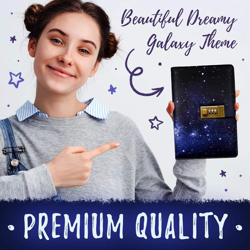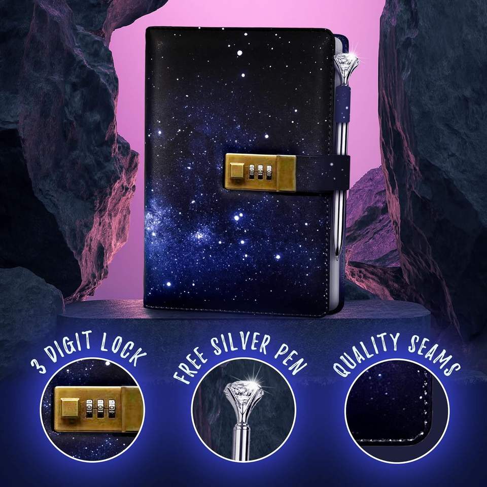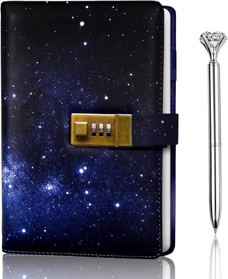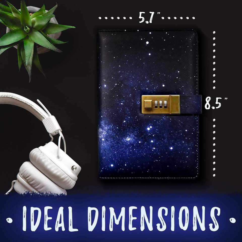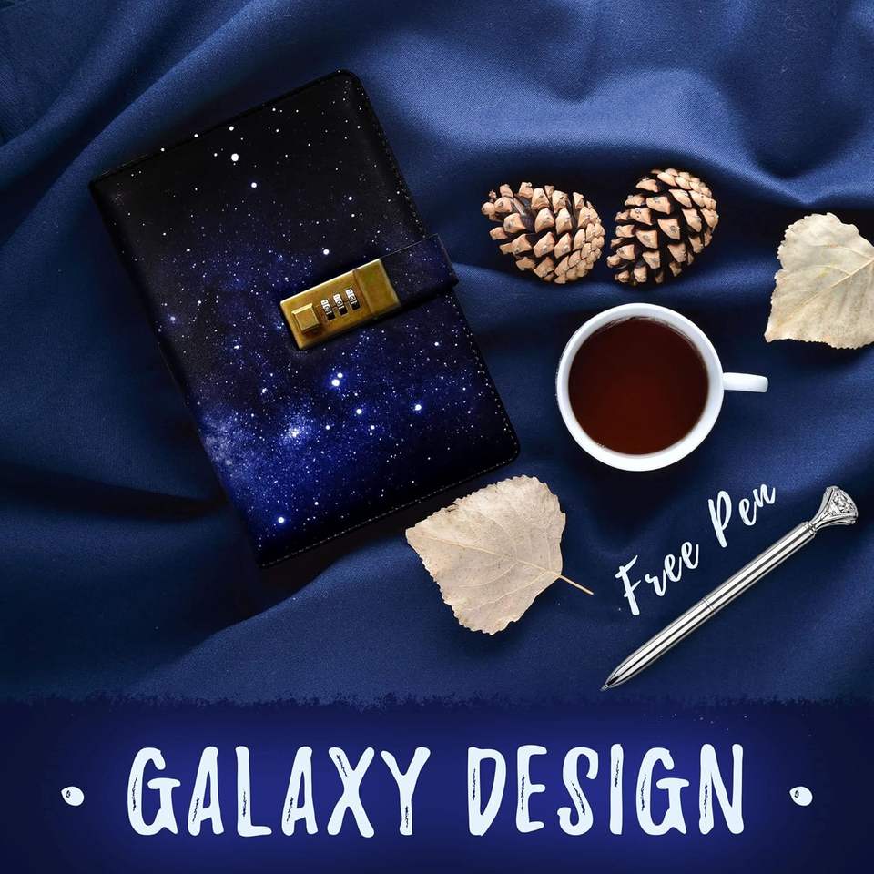 Design della galassia scura di dimensioni A5 con serratura con serratura con blocco con chiusura a penna con blocco diario con blocco in pelle sintetica con blocco