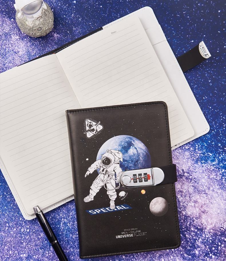 Diario Spaziale A5 per Studenti di Scuola Primaria e Media, Regalo Diario da Astronauta con Lucchetto, Libro Conti con Password