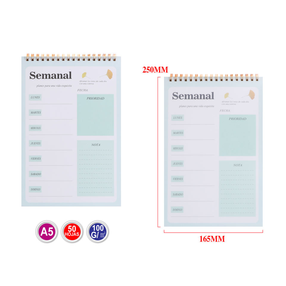 A5 settimanale Planner Notebook 165x249cm 50 fogli 100gsm rilegatura termica rilegatura a spirale foglio di bambù in lino carta Offset per uso scolastico