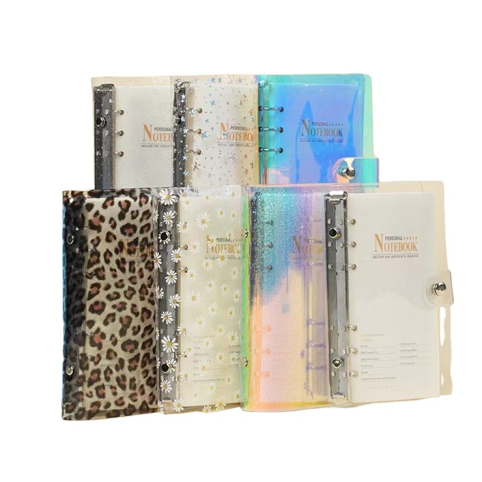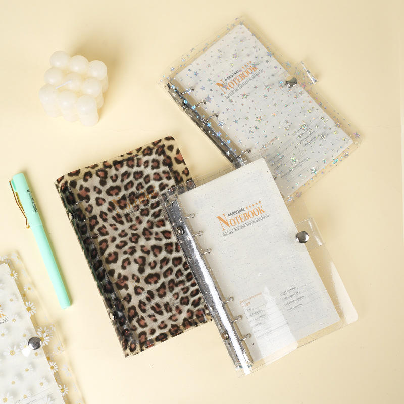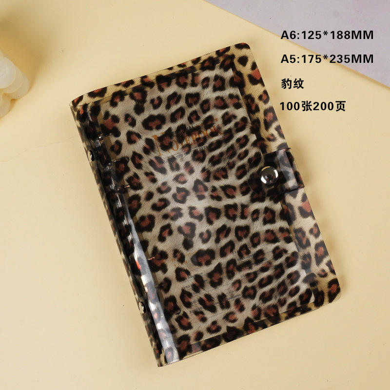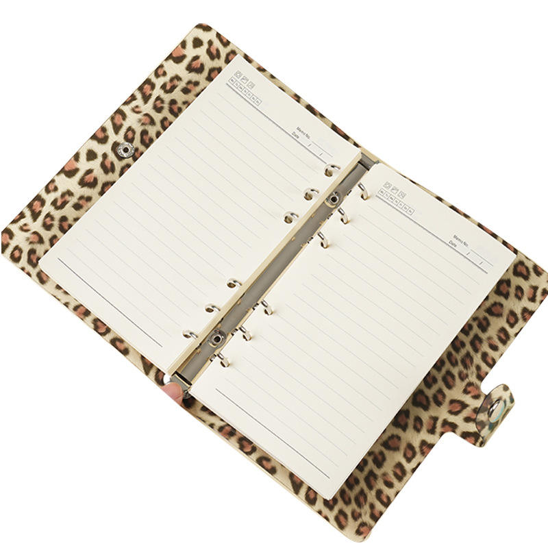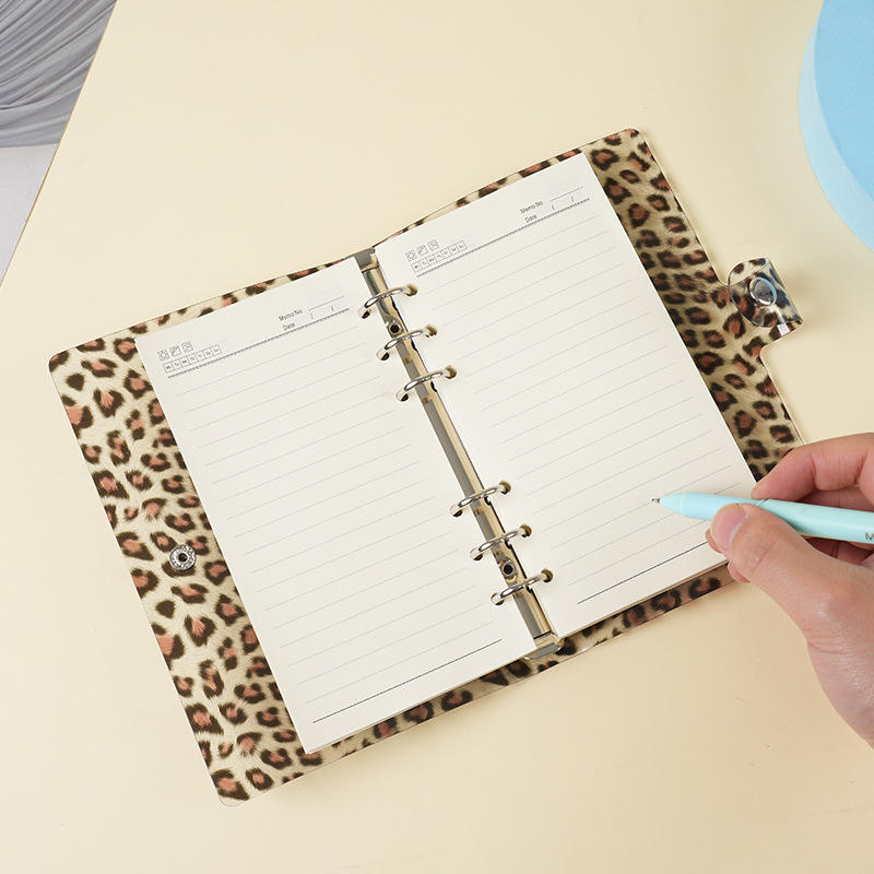 A6 leopardato legante con stampa leopardata Cover morbida a 6 anelli con pulsante a scatto per Notebook pinzetta Organizer File a fogli mobili A6 raccoglitore ricaricabile leopardo