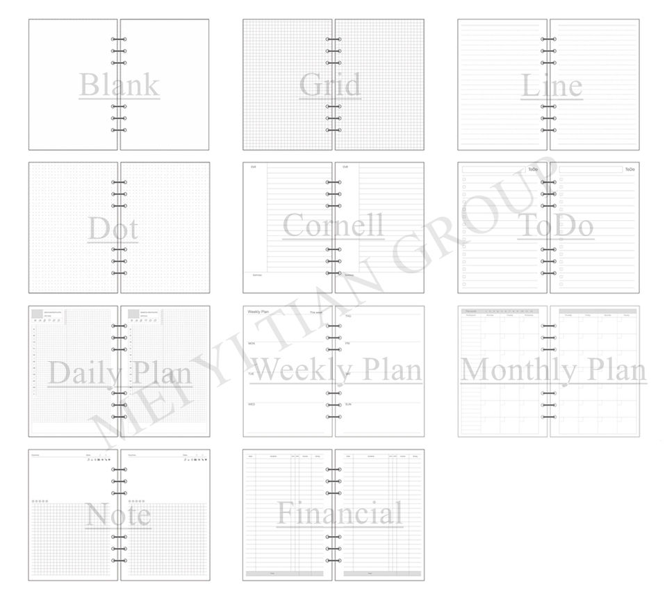 Ricambi Fogli A7 A6 A5 B5 A4 a Punti, Bianchi o Cornell, 45 Fogli per Quaderno a Spirale, Rilegatura ad Anelli, per Planner
