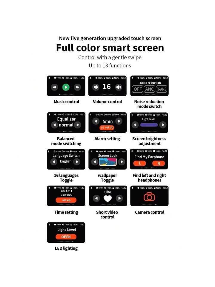 A9PRO Wireless Noise Cancelling Headphones with Touch Screen, 5 Hour Battery Life for Android and iOS