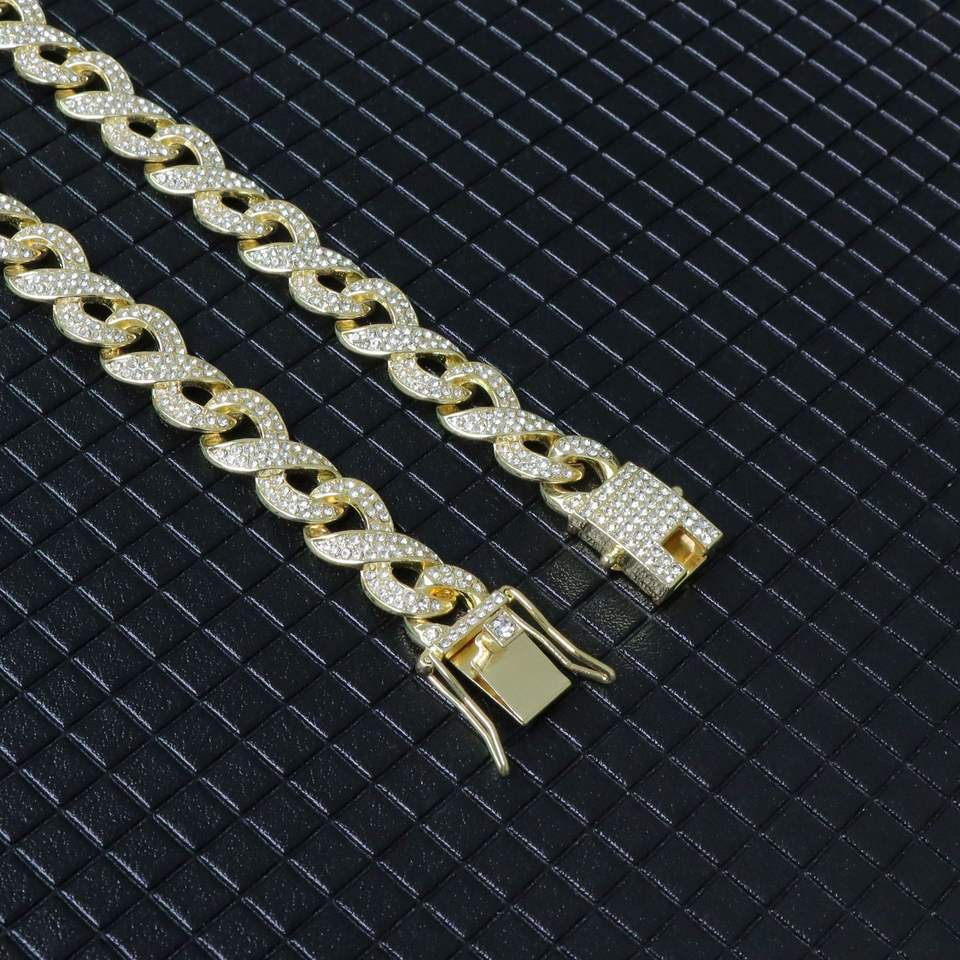 Collana a Catena con Gancio a Forma di 8 Irregolare in Lega, Bestseller Transfrontaliero, Completamente Tempestata di Diamanti, Collana Cubana Hip-hop