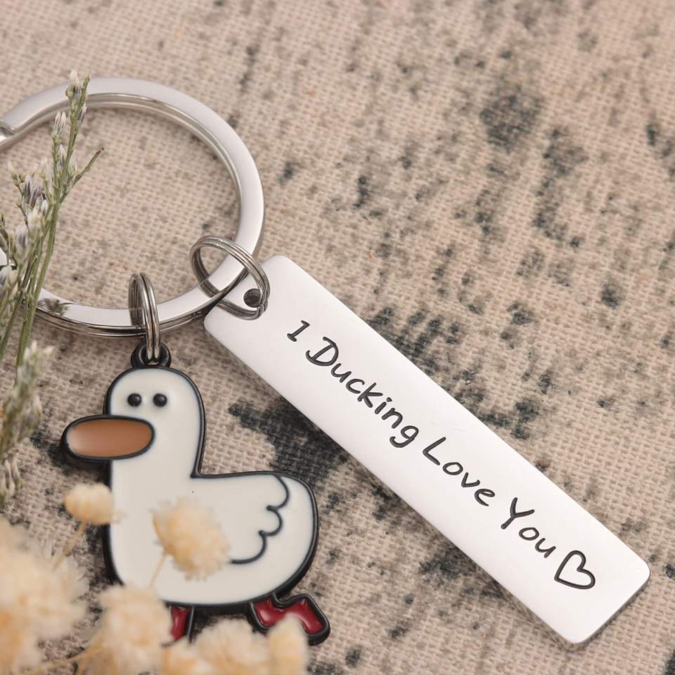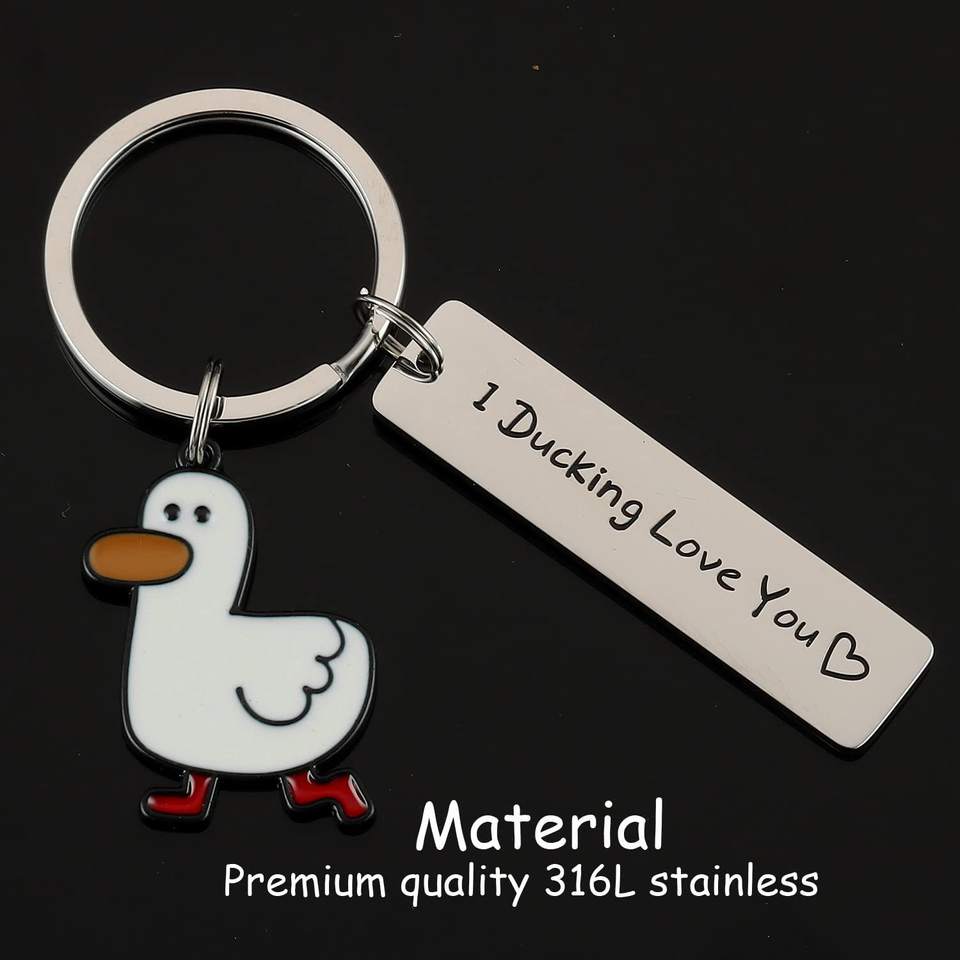 AA020692 Stainless Steel Metal Duck Couple Key Chains for Him Don't Duck With Me I Ducking Love You Valentine's Day Gift