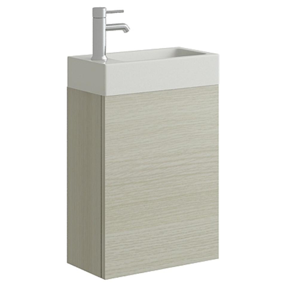 AARAU European Style SMC MDF Light Wood Look Bathroom Set Floor-Standing Guest WC Furniture Ceramic Basin Mirror Vanities