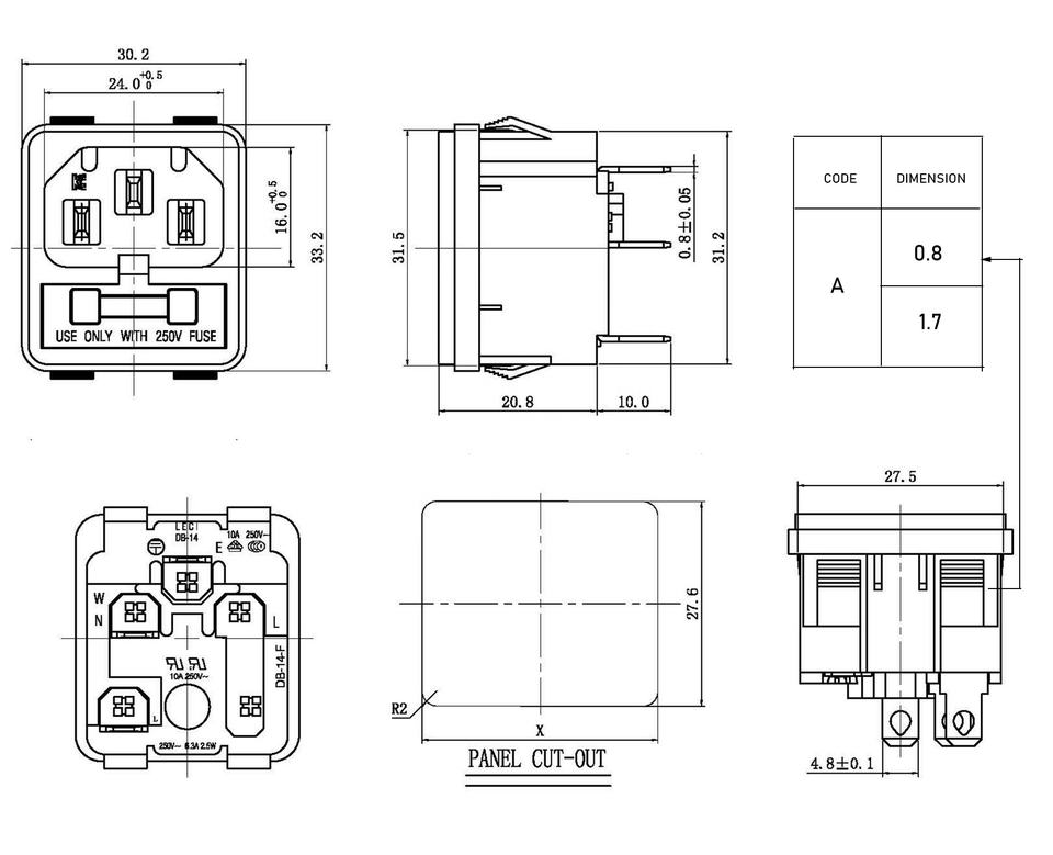Presa AC-02 Tipo Scheda per Montaggio a Pannello o Presa AC con Scatola Portafusibili