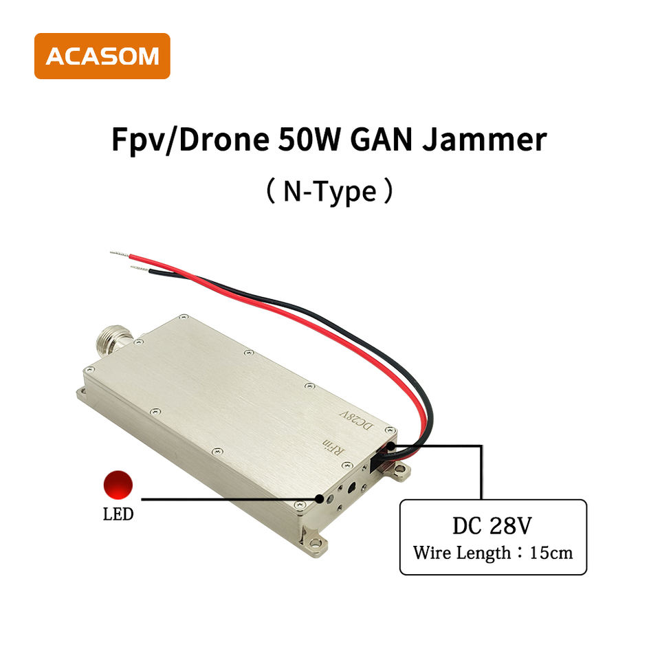 ACASOM ACA-Jam09 Jammer Tipo N 860-930 MHz con GaN e Circolatore, Potenza di Uscita 10-50W, 24V/28V, Dissuasore FPV ad Alta Efficienza