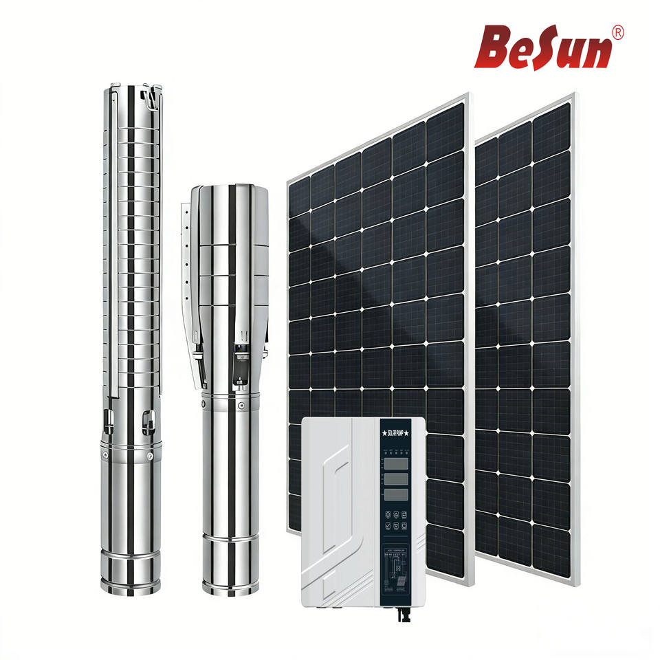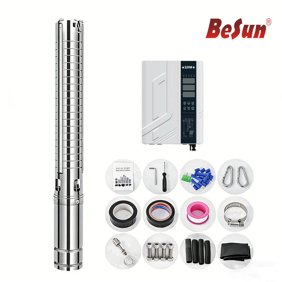 Pompa Solare Ibrida ACDC 4 Pollici 1.5HP, Pompa Sommergibile per Pozzi Profondi 110m, Senza Spazzole, per Agricoltura