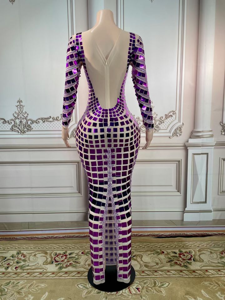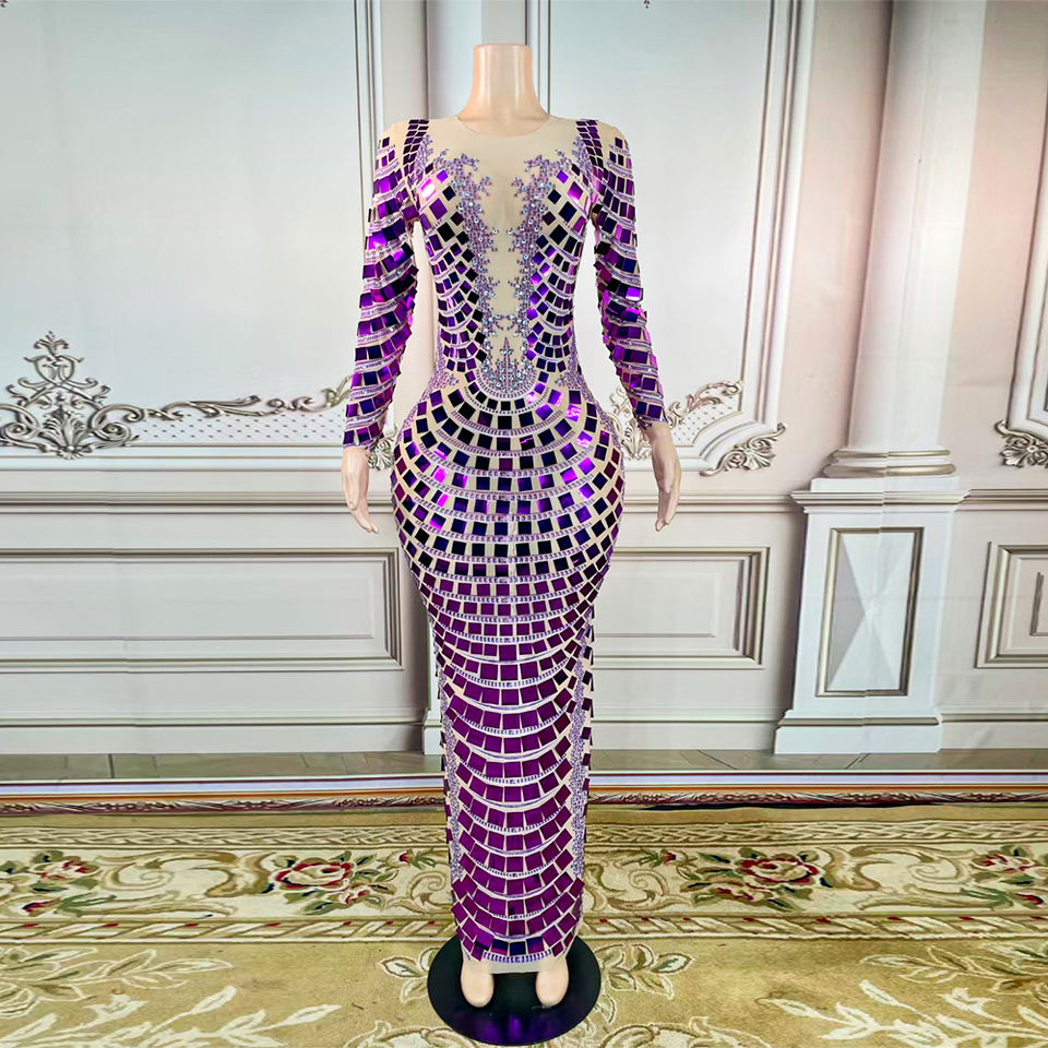 AD1465 Kimshein Handmade Crystal Women Shiny Mesh Fabric Transparent Big Sequin Rhinestone Gala Performance Dresses Evening