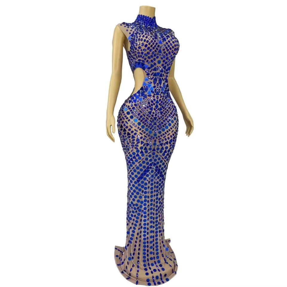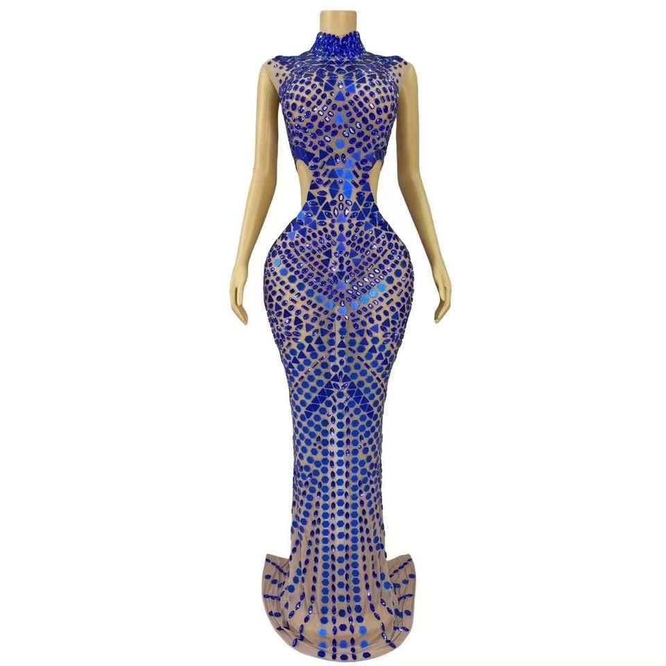 AD1845 Elegant Luxury Ladies Evening Dress Long Sleeve Crystal Rhinestone Embellished High Quality for Parties and Events
