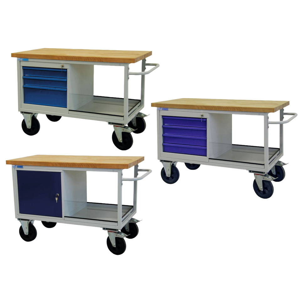 ADB Table Cart 1300x600x840 mm – mobile workbench with drawers, shelf or door, RAL 7035/5012/7016