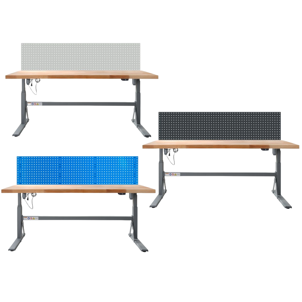 ADB Banco da lavoro HEAVY elettrico regolabile in altezza – Piano in faggio, capacità di carico di 350 kg, con pannello forato,
