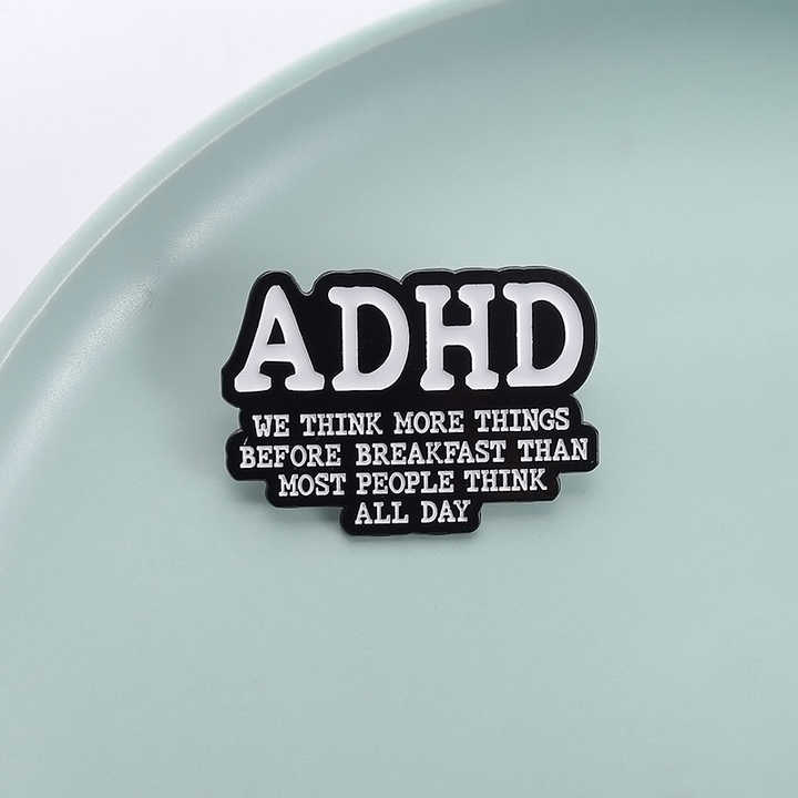 ADHD spilla per smalto per la salute mentale pensiamo più cose prima di colazione che la maggior parte delle persone pensa per tutto il giorno a spilla distintivo regalo per gioielli