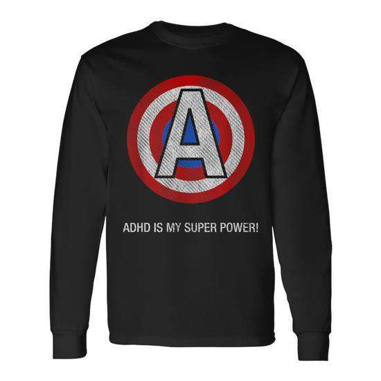 T-shirt a maniche lunghe motivazionale Super Power ADHD per la consapevolezza e l'autostima