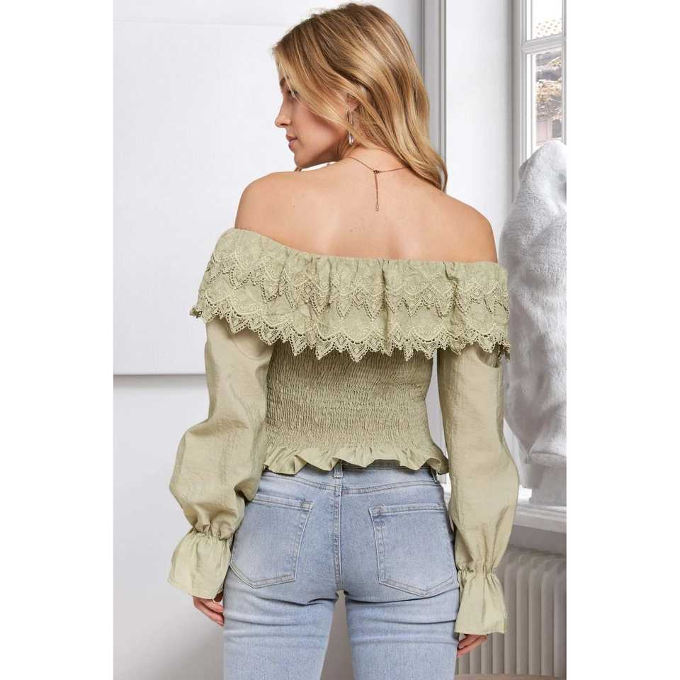 ADORA SAGE Camicetta Smock con Pizzo Traforato e Volant 100% NYLON Leggermente Elasticizzata Lavabile in Lavatrice a Freddo e Asciugatrice a Basso Impatto