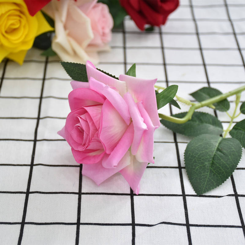 AF10103 vendita calda artificiali grandi Rose mazzo di fiori di seta giardino rosso singolo velluto rosa floreale