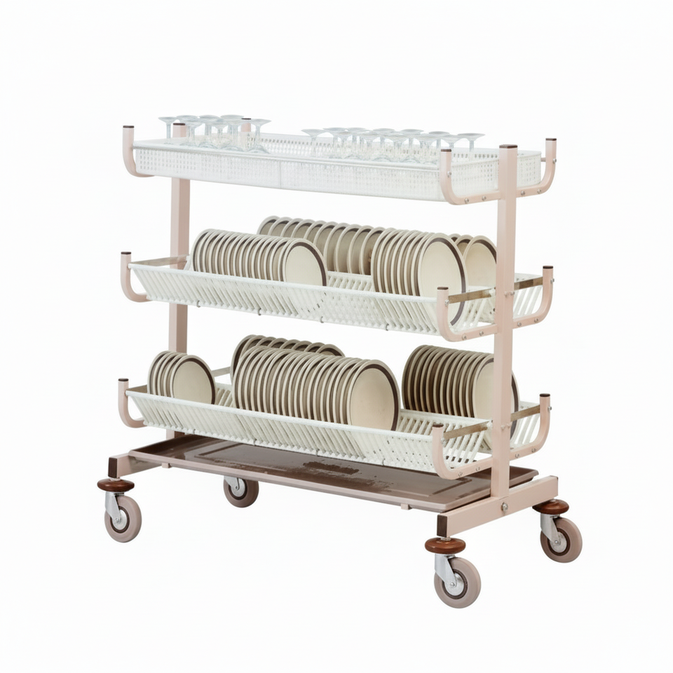 Carrello di scarico in vetro AFP/CA60, scolapiatti in acciaio epossidico sabbiato